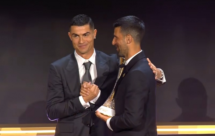 法甲积分榜 两位传闻!德约获首届公共体育奖,C罗行为受奖嘉宾与其亲切捏手