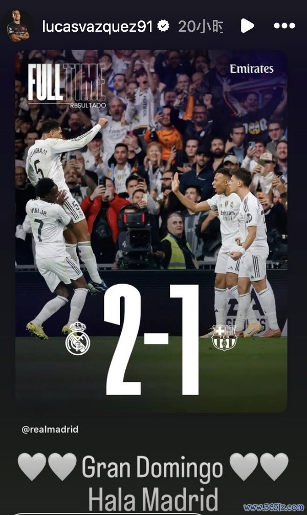 巴斯克斯晒照庆祝皇马取胜:一个完整的周日,Hala Madrid!