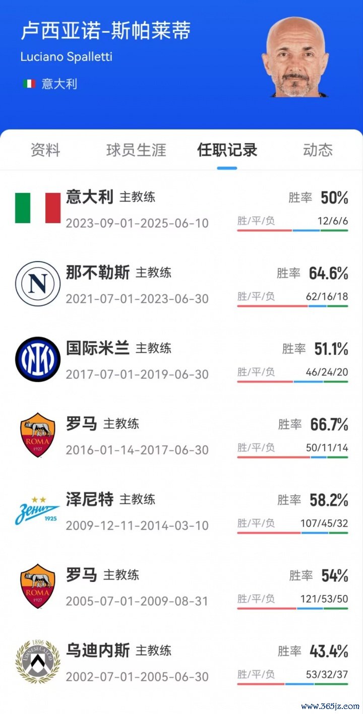 斯帕莱蒂于2023年夏天担随性大利国度队主莳植,带队24场,战绩为12胜6平6负。在6月初的世初赛上,他指导的意大利队0-3惨败于挪威,在捏教完6月10日的世初赛后,斯帕莱蒂下课。
