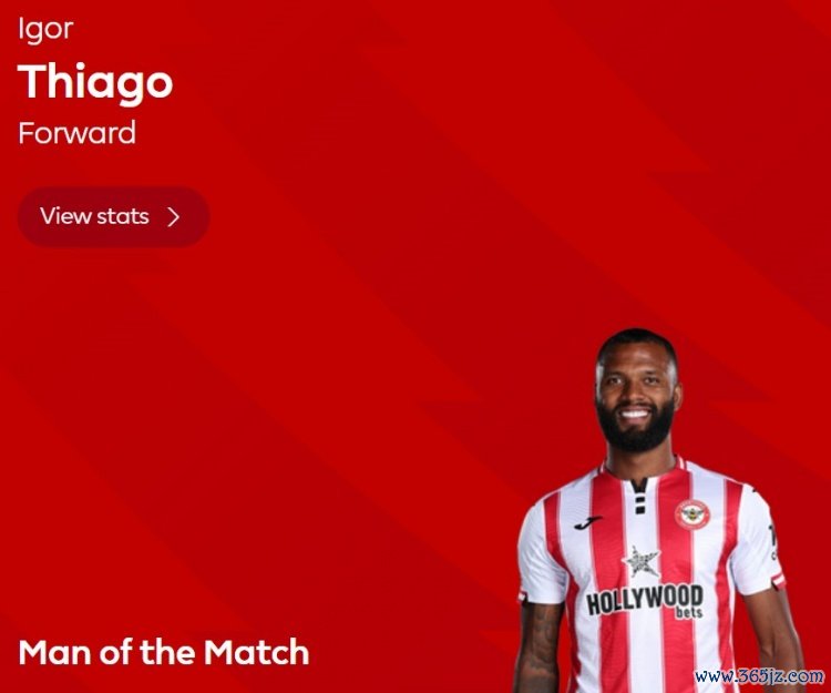 梅开二度,英超官方:伊戈尔当选布伦特福德3-1纽卡全场最好