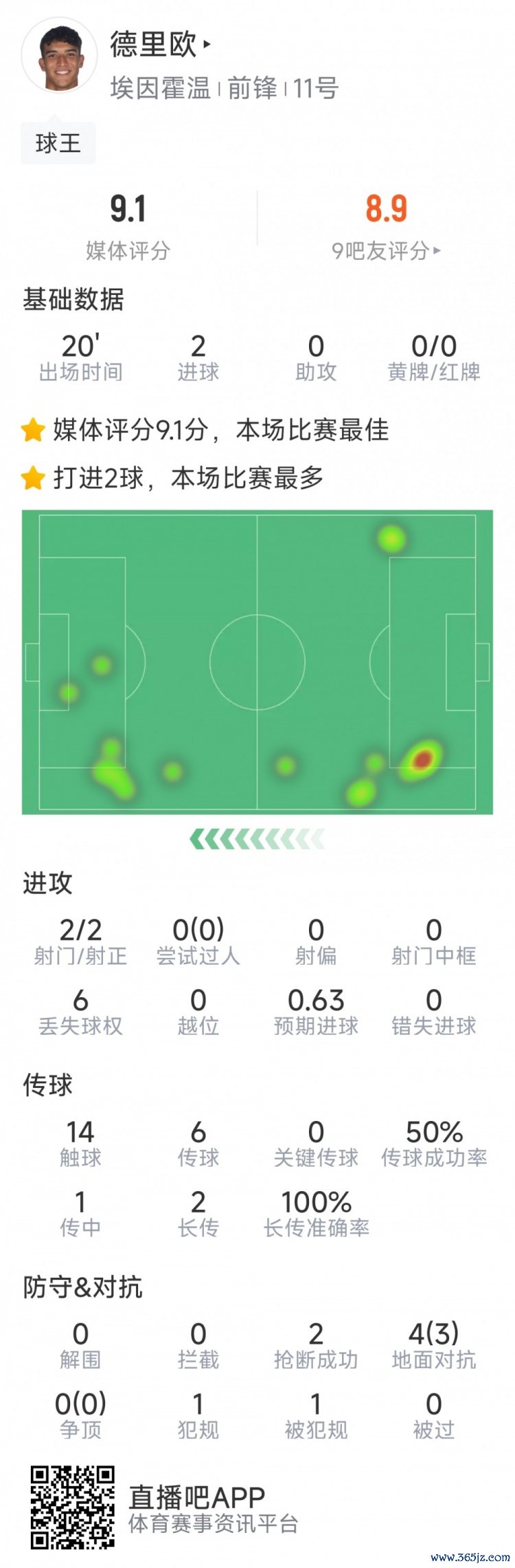 据统计,本场替补登场梅开二度的德里欧为埃因霍温在9场欧冠打进3球,而他在球队25场荷甲比赛只打进2球。