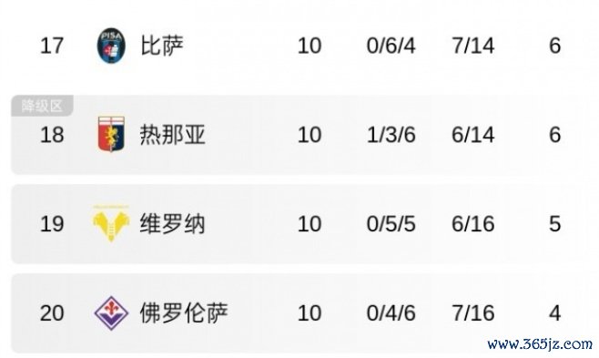 佛罗伦萨本赛季意甲开赛于今4平6负积分榜垫底,是3支未曾一胜的球队之一,球队本轮主场0-1负于莱切,际遇两连败。