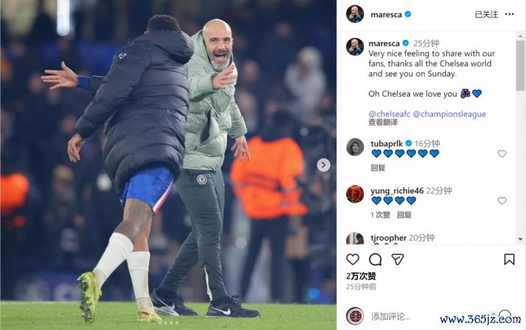 马雷斯卡社媒:与球迷共享生效的旺盛太棒了,感谢扫数蓝军环球庭