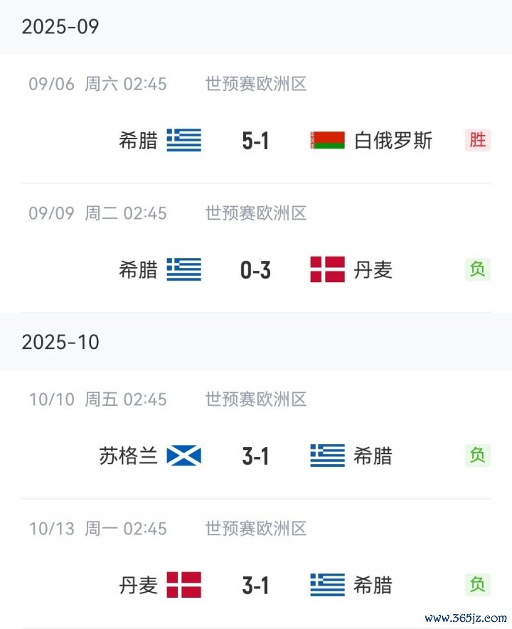 10月13日讯 在今天凌晨的欧洲区世初赛中,希腊客场1-3不敌丹麦,提前宣告无缘2026天下杯。