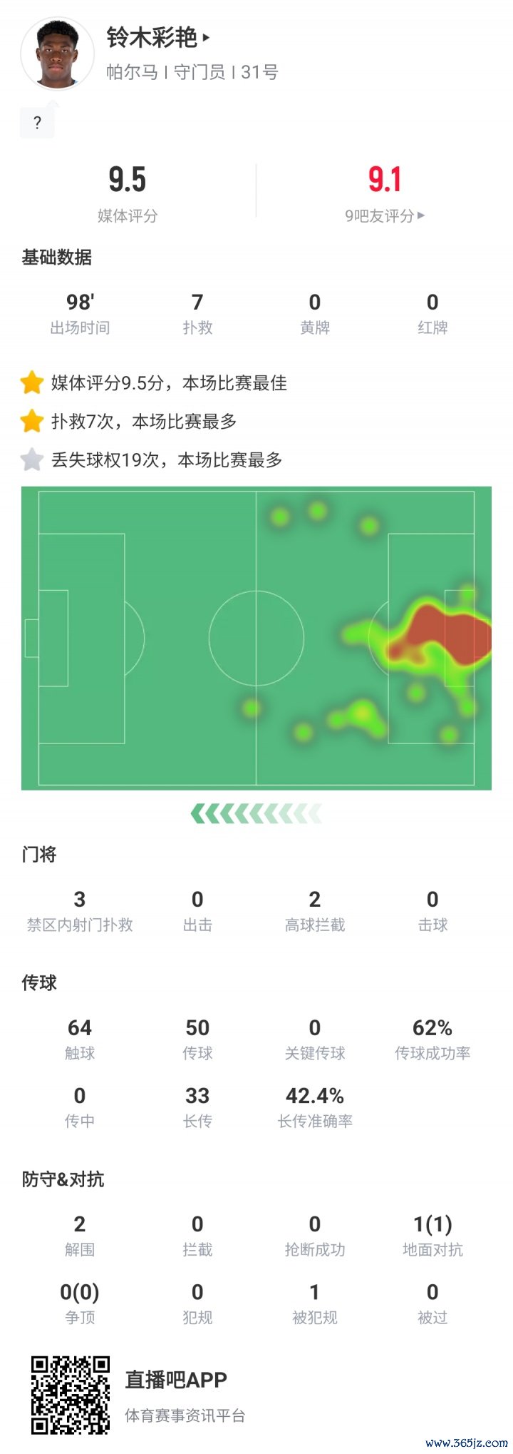 太强了!铃木彩艳压哨扑点救主+7扑救 单场9.5分助十东说念主帕尔马拿分