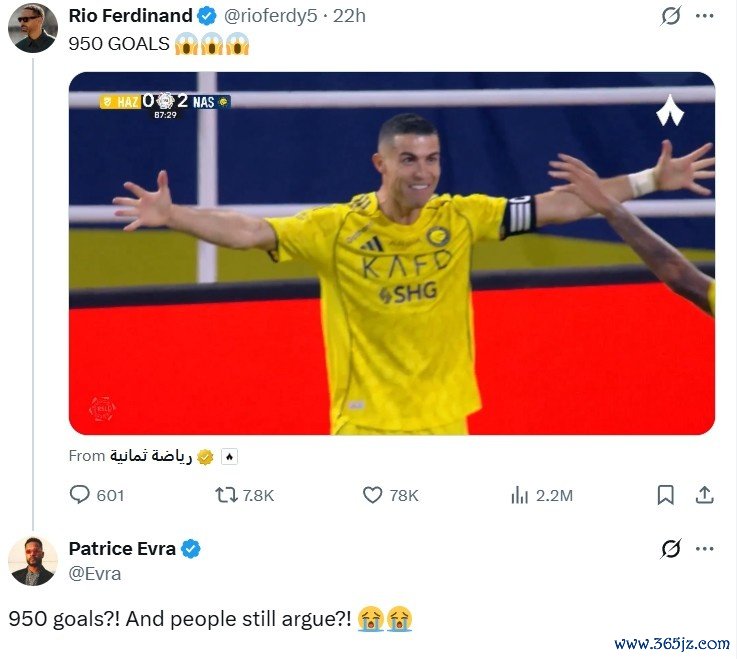 C罗950球!费迪南德惊奇C罗进球数,埃弗拉:简直还有东谈主在争论?