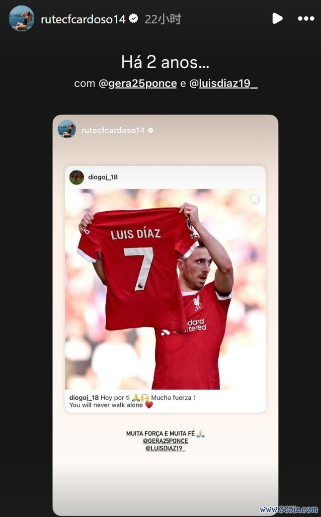 亲戚或余悲!遗孀社媒缅念念“若塔举球衣声援迪亚斯”:2年前…