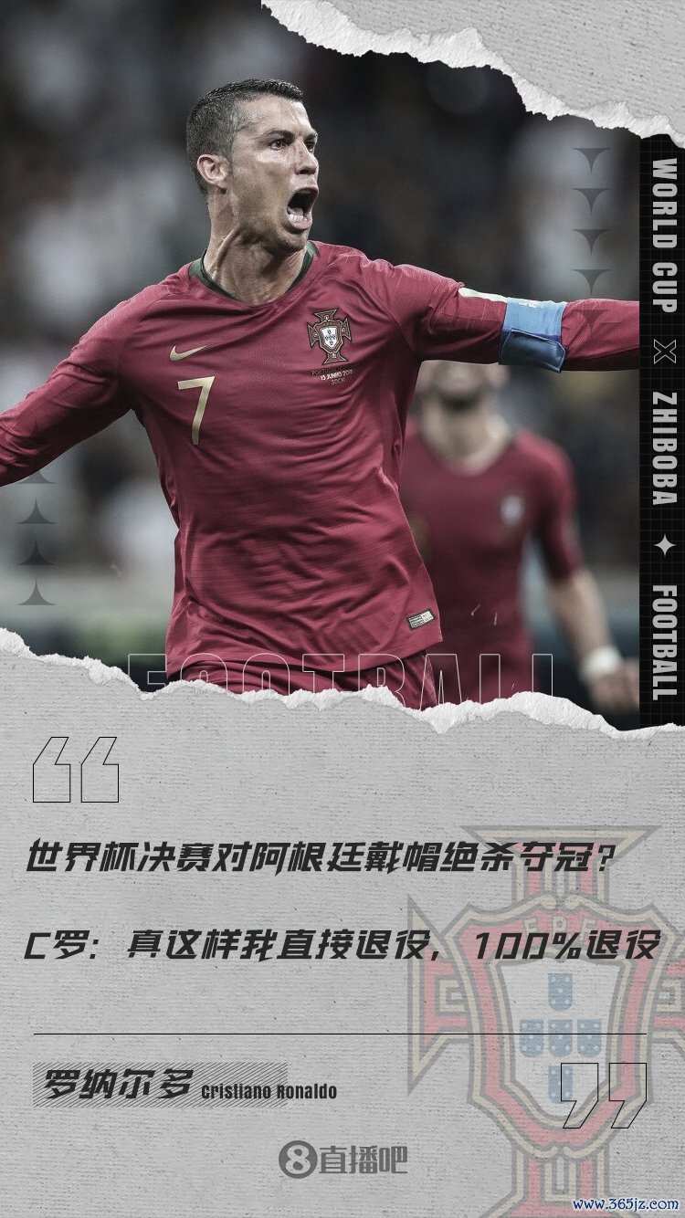 之后C罗还示意若天下杯决赛对阵阿根廷戴帽夺冠,100%退役。