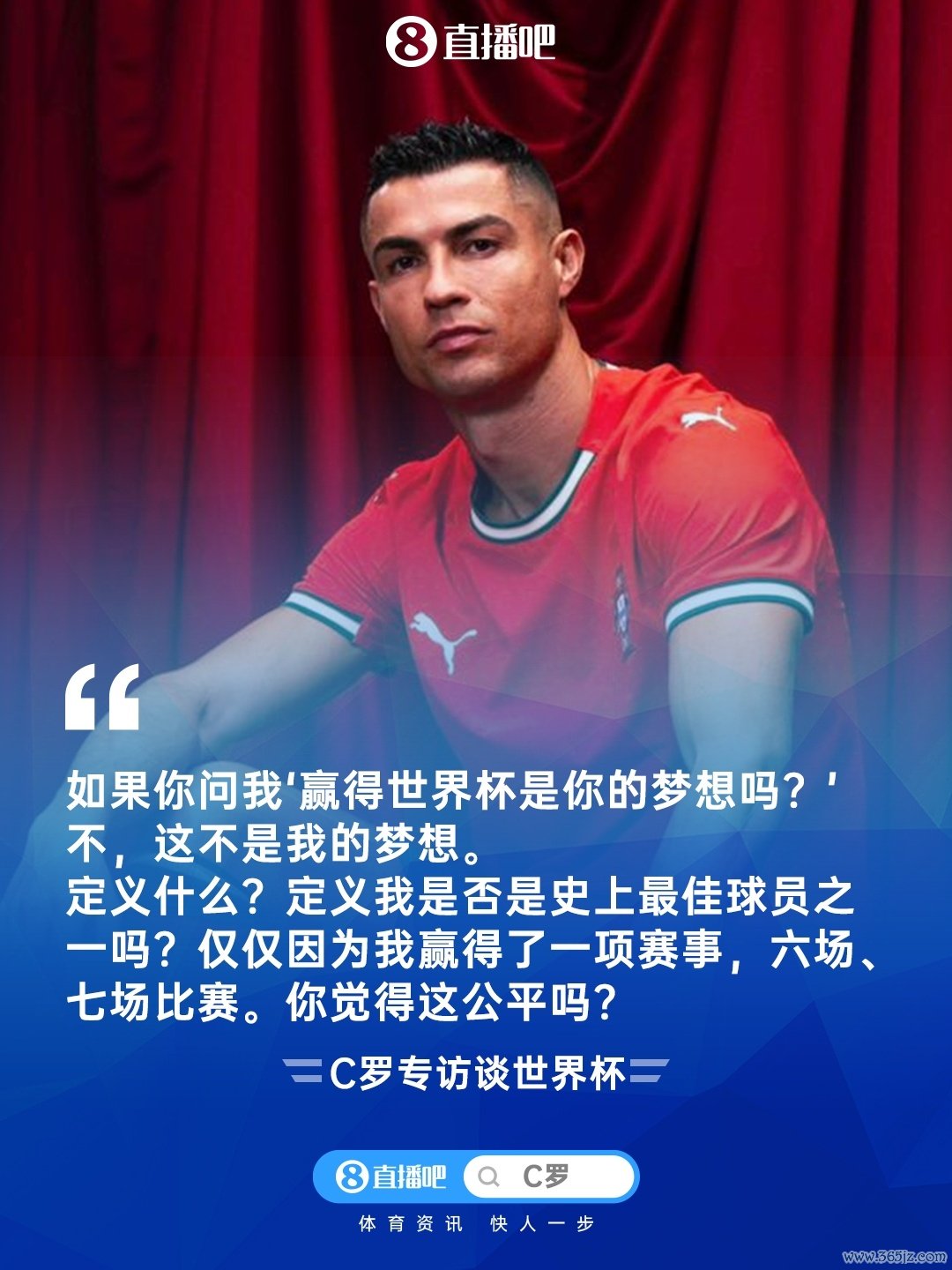 C罗:这也太好了,我没念念过好到这么的梦(笑)。你不错说其他东谈主进球,我不在乎,如若是葡萄牙进天下杯决赛,哪怕是门将进球,我亦然天下上最欢快的东谈主。