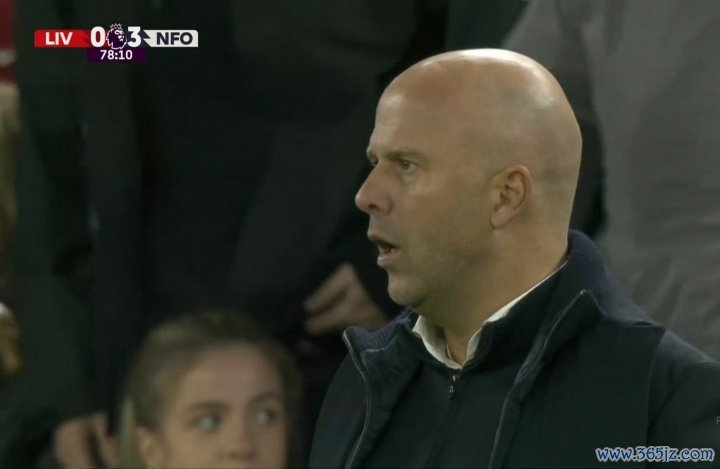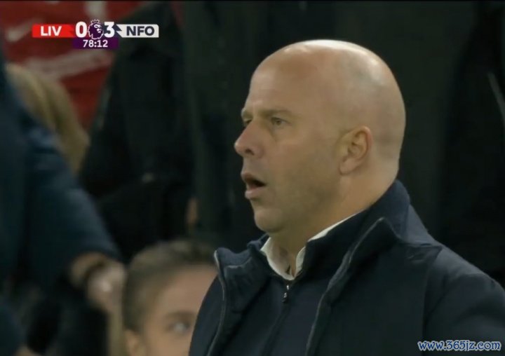 11月23日讯 利物浦vs丛林第78分钟,利物浦再丢一球,比分变为0-3!转播镜头随即切给了斯洛特!