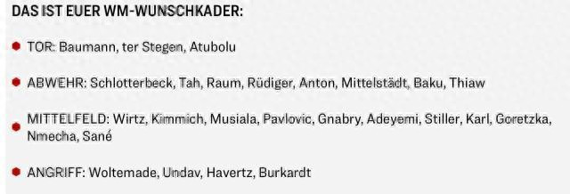 德国队2026寰宇杯分组出炉,《踢球者》迫不足待搞起了寰宇杯26东说念主声势投票,驱散现在梗概有4万东说念主参加,有了一个初步恶果(见下图)。