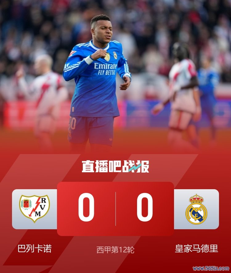 西甲联赛第12轮,巴列卡诺0-0战平皇马,完结皇马4连胜。